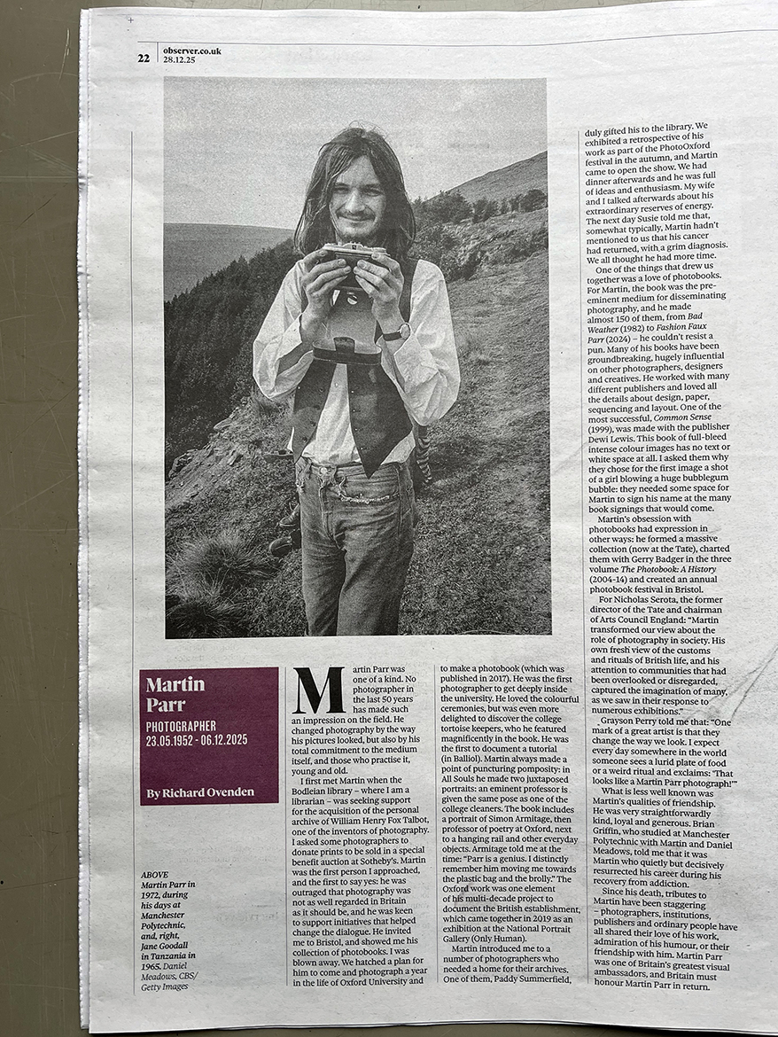 The Observer 28.12.2025. ’Those We Loved and Lost’ by Richard Ovenden, the Bodleian’s librarian. Photograph by Daniel Meadows…